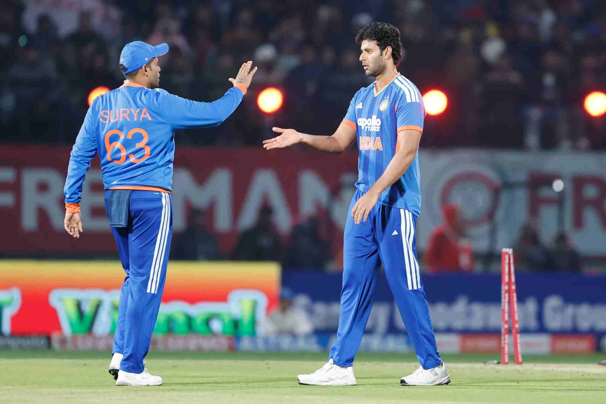India captain Suryakumar Yadav won the toss and elected to bowl first at the dewy HPCA Stadium, and his bowlers showed their class to have the visitors struggling at 44/4 at the 10-over mark.
